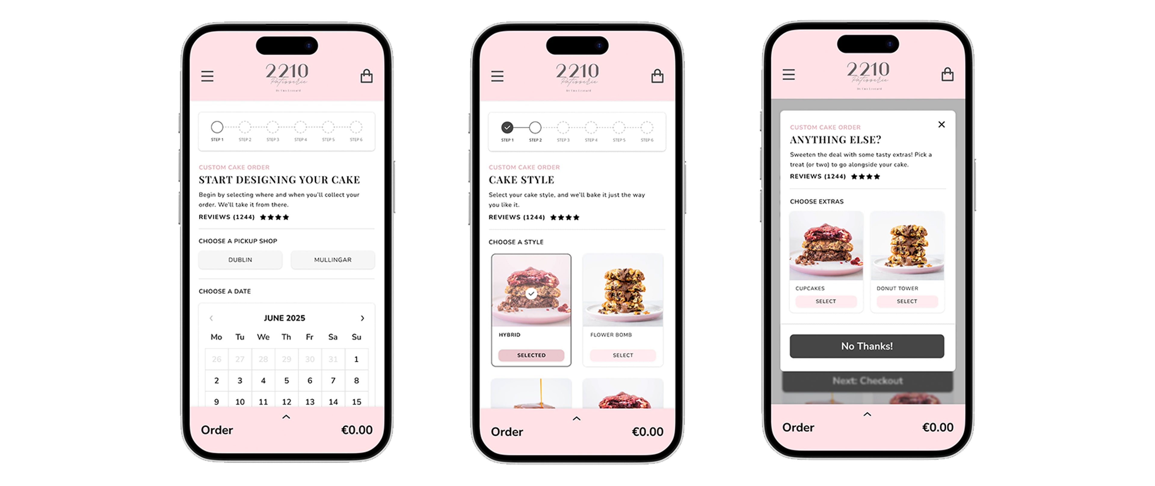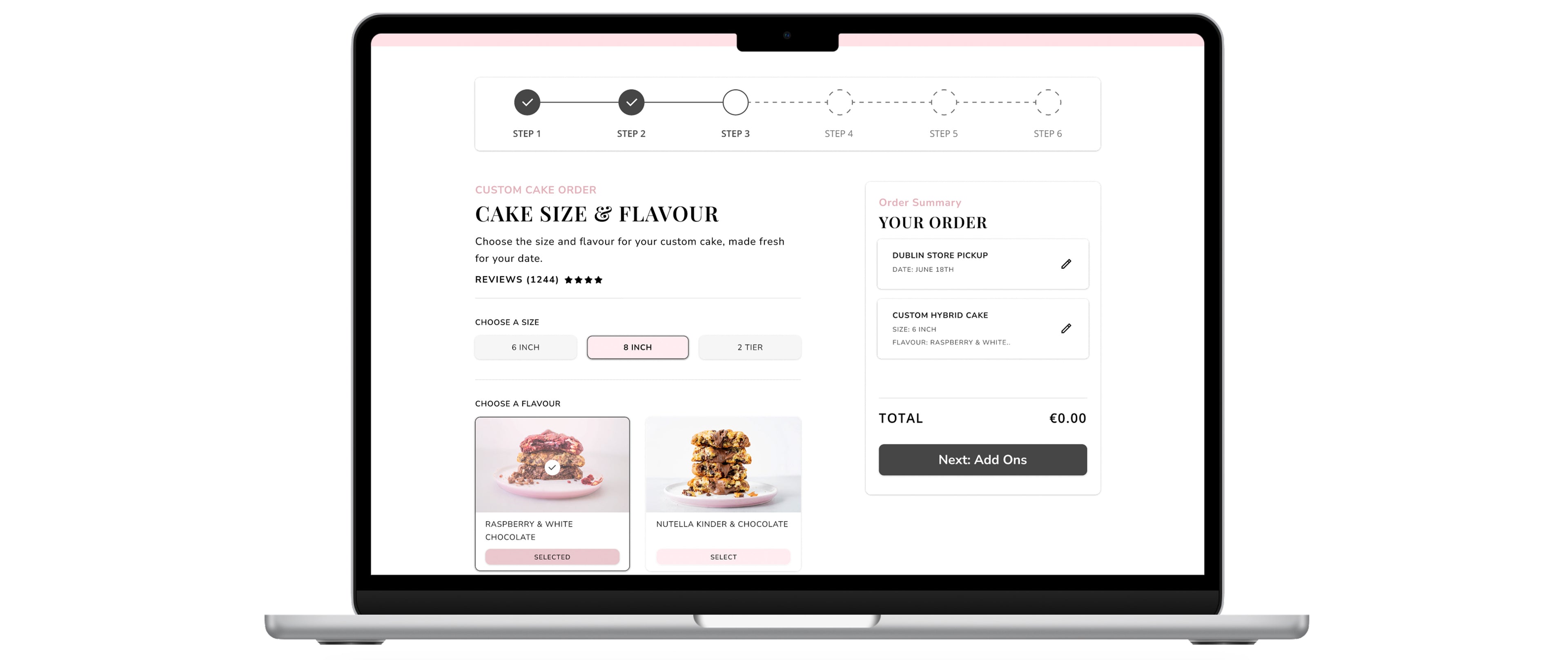 The new design is built around a seven-step flow, guiding users through every key decision - from choosing a date, to selecting the size, style, flavour, and personalised details. At each step, a progress bar updates in real time, confirming completed stages and clear labelling to show what’s coming next. This kind of progress feedback has been shown to reduce cognitive load and abandonment in multi-step tasks, especially when paired with simple, linear navigation (Nielsen Norman Group, 2020).
